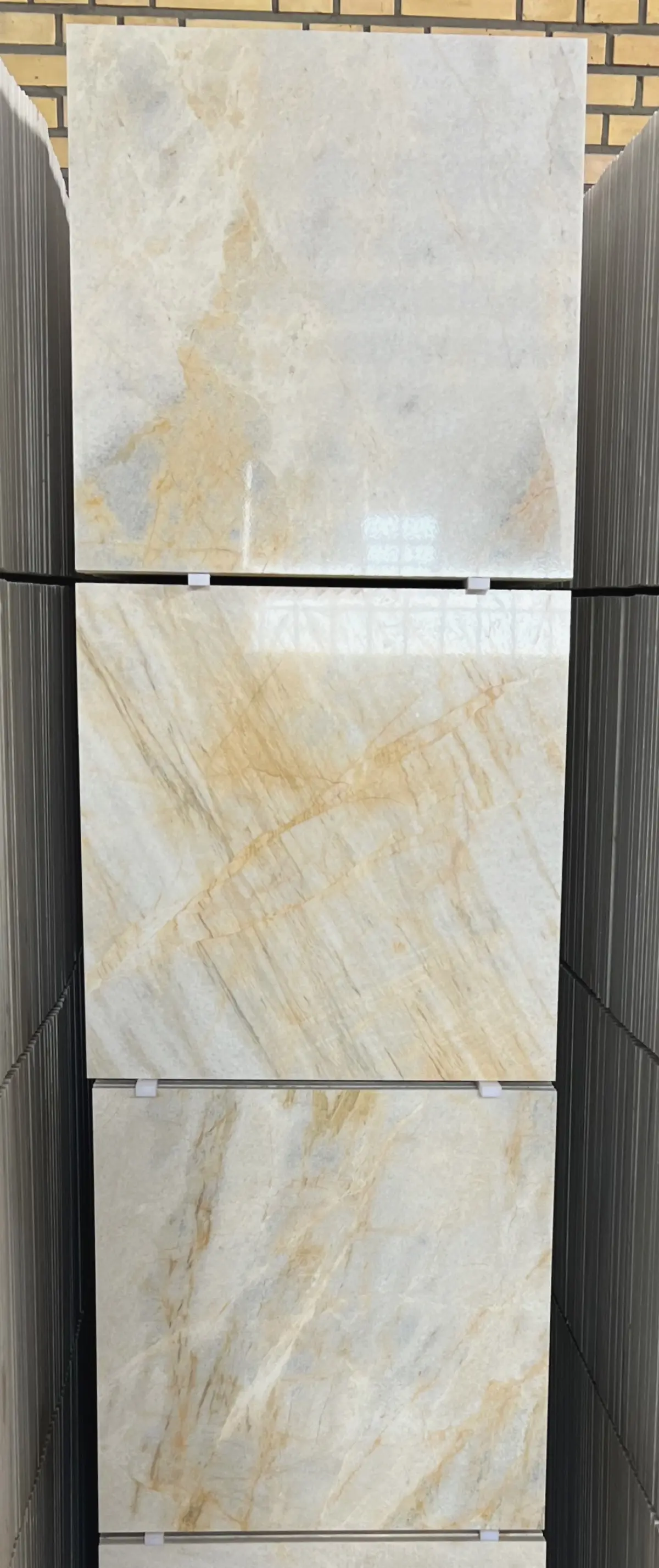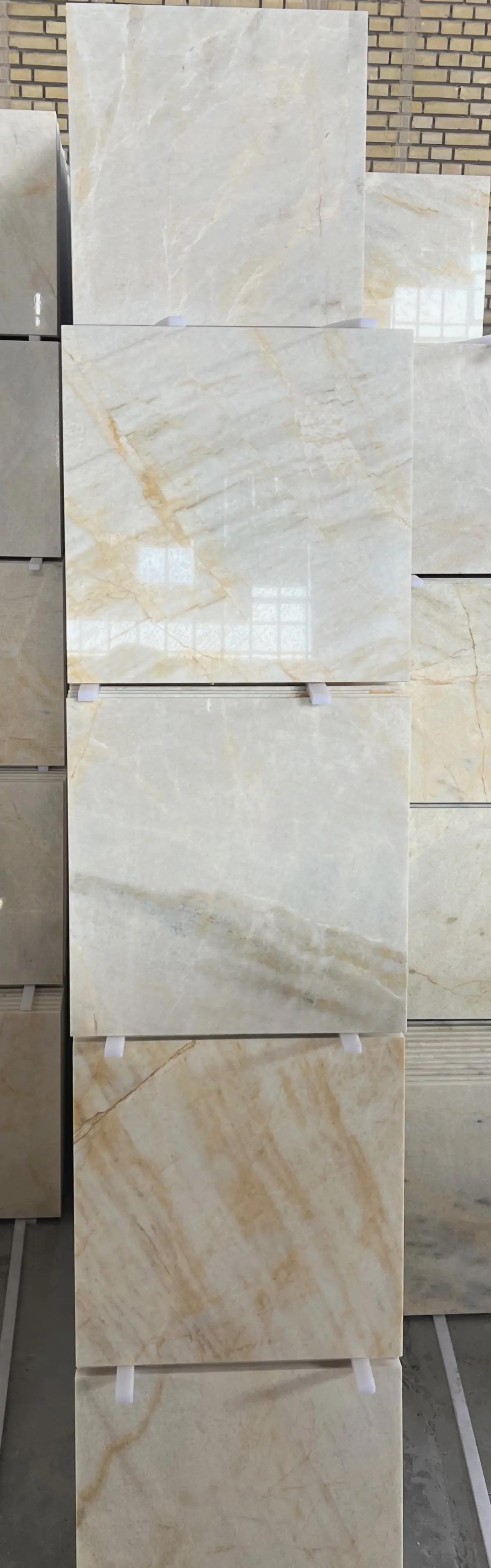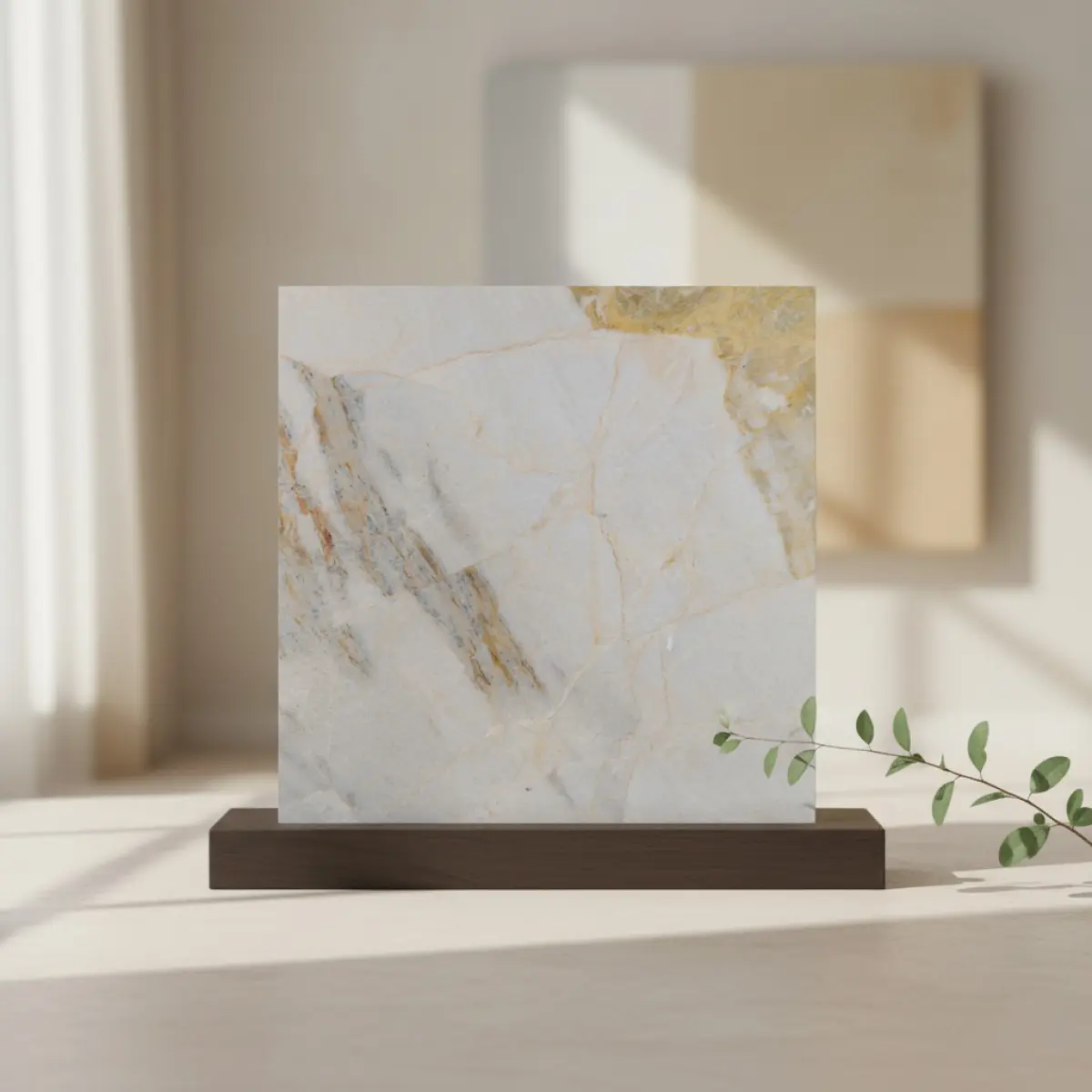 سنگ آلپاین دارای تم رنگی سفید با شالها و هالههای طلایی پررنگ بصورت نامنظم است
